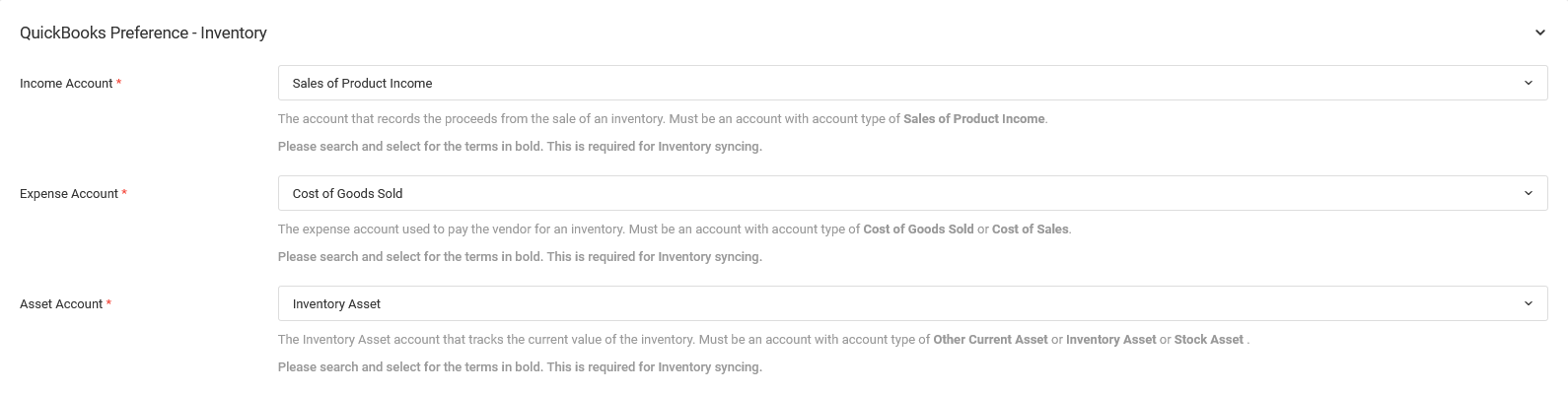 Before syncing Inventory data, ensure that QuickBooks settings have been set up properly.